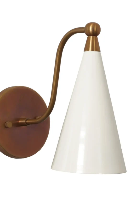 Single Light Cone Shade Brass Wall Sconce