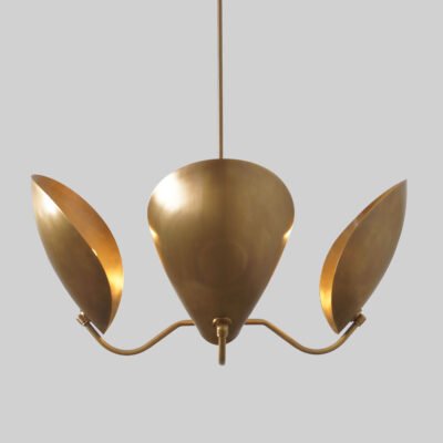 3 Light Cut Shade Pendant Mid Century Modern Raw Brass Sputnik chandelier light Fixture