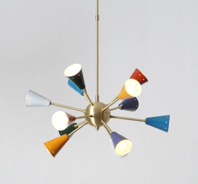 Pendant Mid Century Modern Raw Brass Sputnik chandelier light