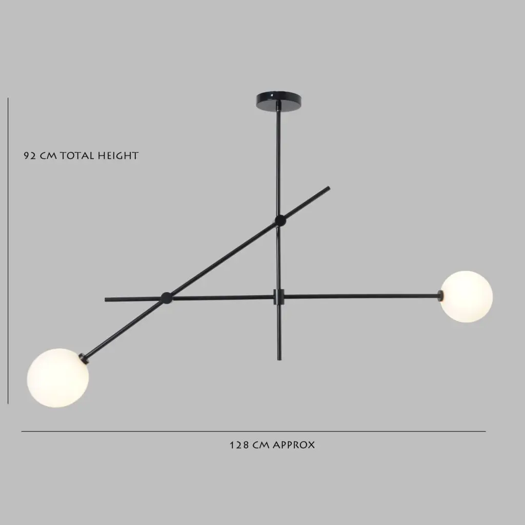 Fixture Width: 64″ Fixture Depth: 38″ Height (standard): 36” Adjustable Height: Yes Canopy/Base Diameter: 5" Dia Fixture Weight: 18 lbs. Socket Type: E26 (USA & Canada) Socket Type: E27 (EU & UK) Voltage: 120-240V (USA & Canada) Voltage: 240V (EU & UK) Number Of Sockets: 3
