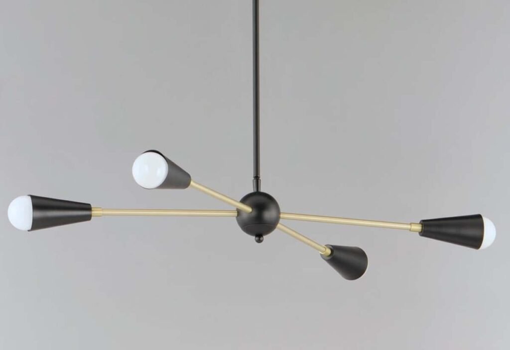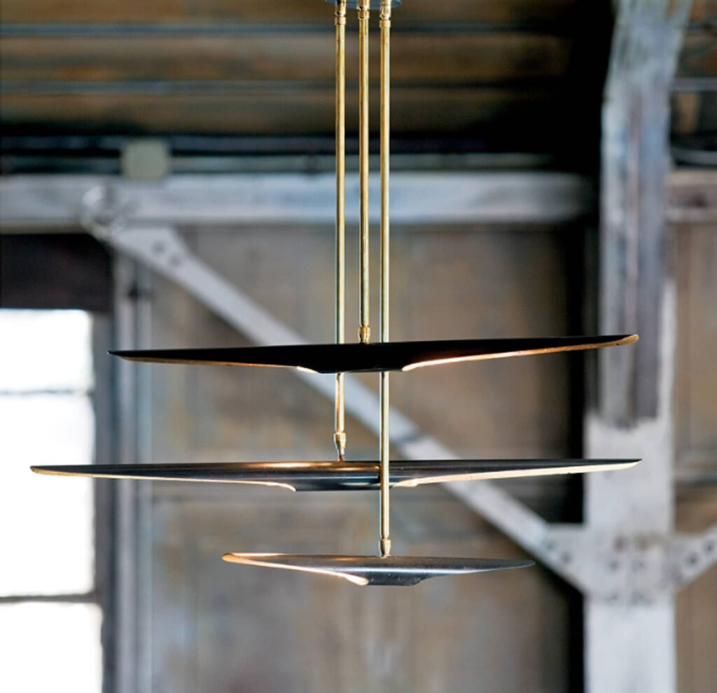 The aerodynamic Concorde chandelier light fixture, which was inspired by a supersonic aircraft, features a brass-colored interior and a sleek black brass finish outside. This adds a sense of contemporary elegance to your dining area or entryway, as does its triple-tier silhouette.