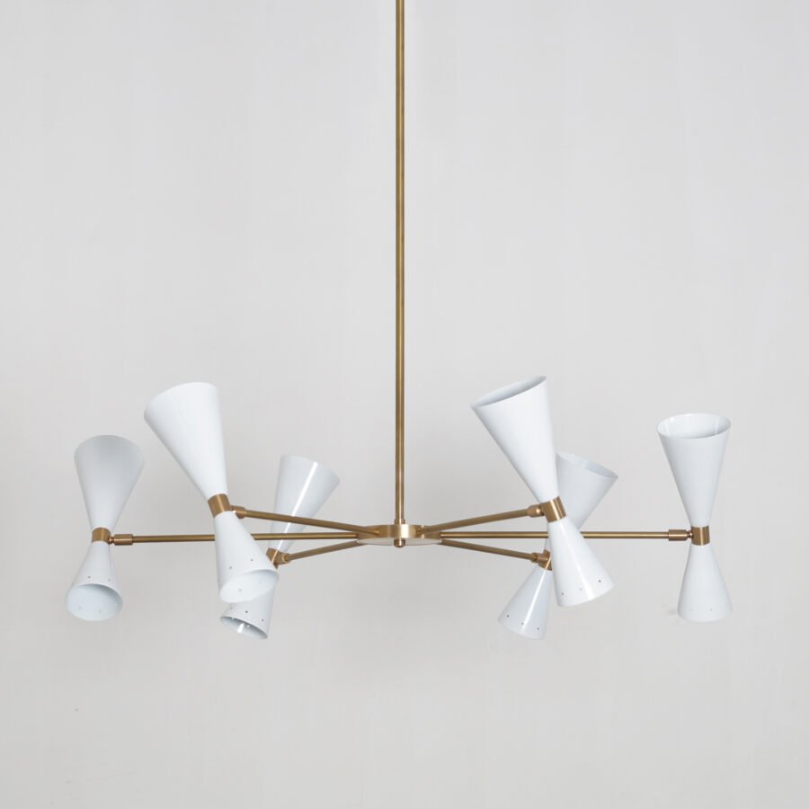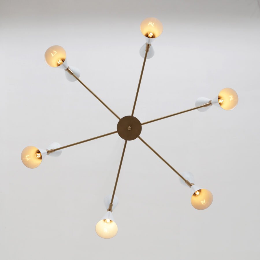 6 Stilnovo Style Raw Brass chandelier light Fixture