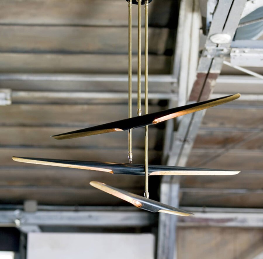 The aerodynamic Concorde chandelier light fixture, which was inspired by a supersonic aircraft, features a brass-colored interior and a sleek black brass finish outside. This adds a sense of contemporary elegance to your dining area or entryway, as does its triple-tier silhouette.