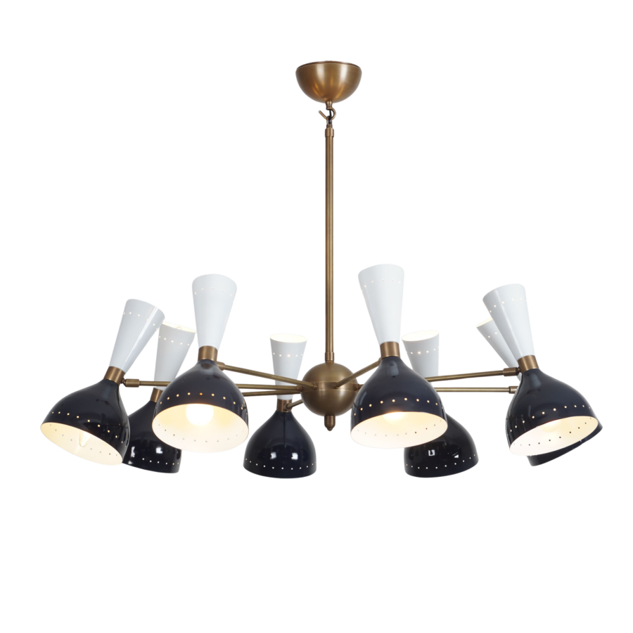 Diabola 8 Shade Light Stilnovo Brass Chandelier Fixture