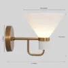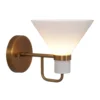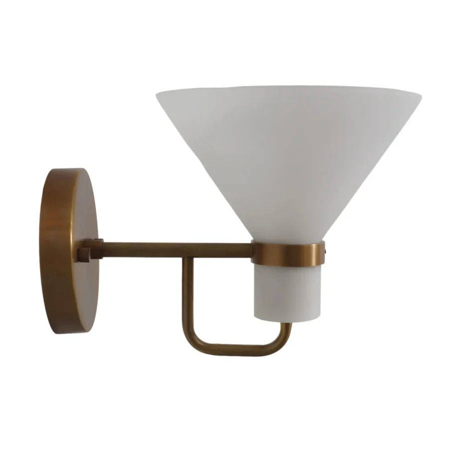 Single Light Glass Funnel Shade wall lamp. Expertly made by a specialized workshop, every aspect of this lamp is meticulously crafted to match the hard-to-find lamps from the 1950s. its versatile nature makes it perfect for placement on the side of a fireplace, giving light to a console island, or illuminating a reading sofa.