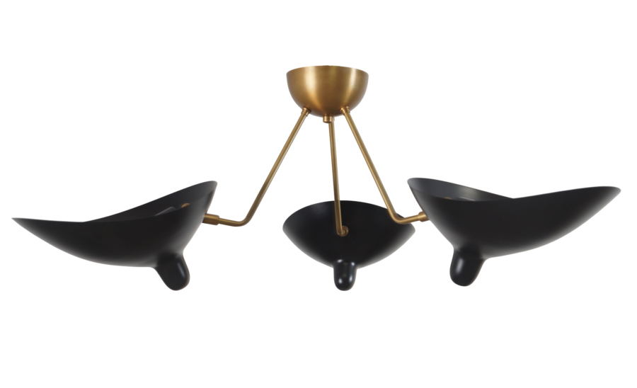 Three Light Shade Semi Flush Mount Brass Ceiling Fixture