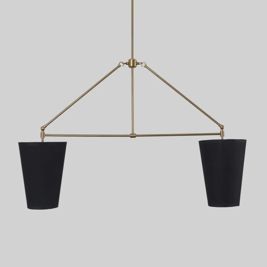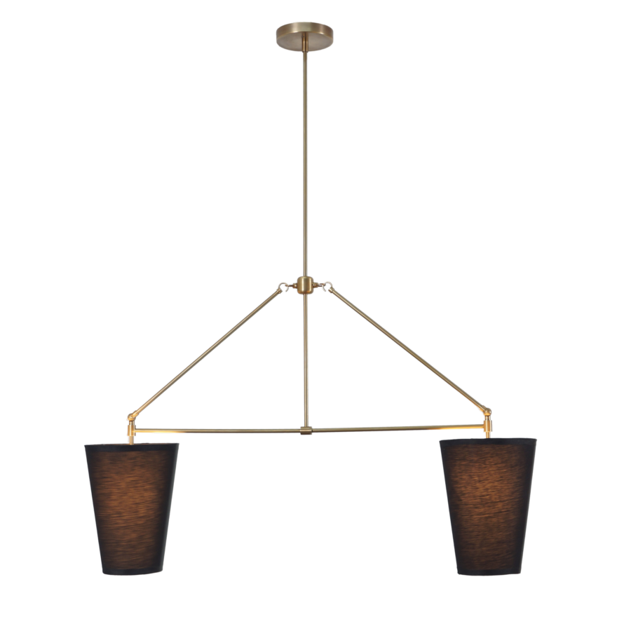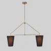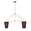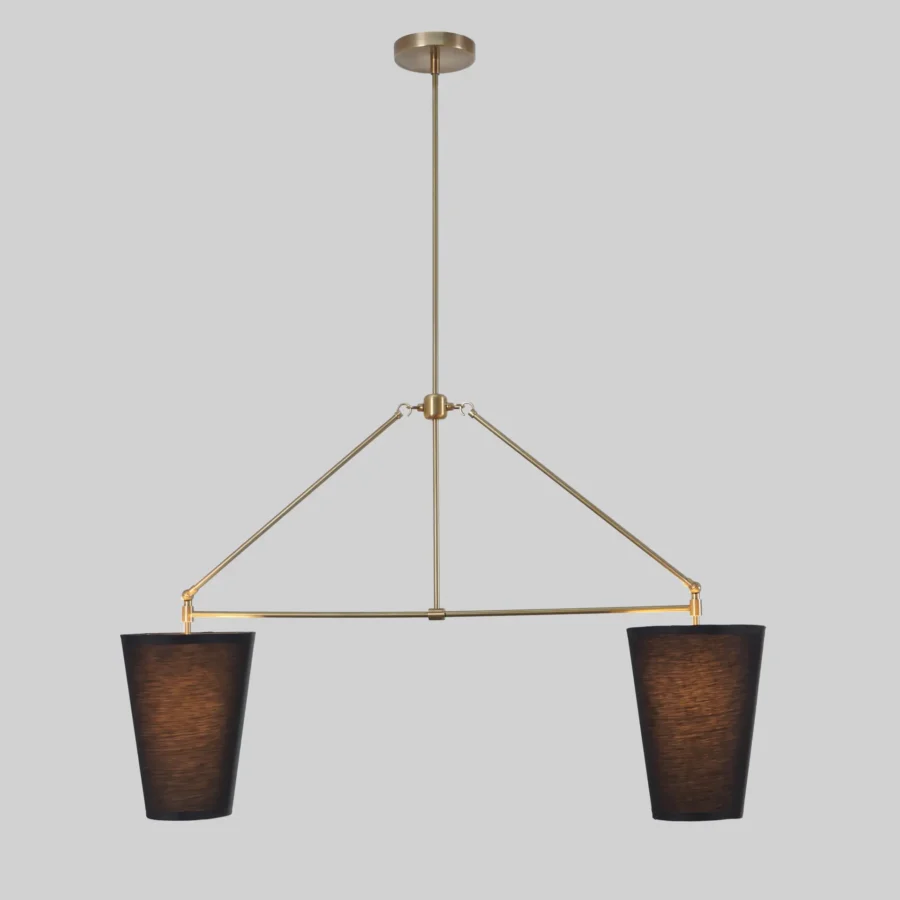 Two Light Linen Shade Brass Pendant Ceiling Light Fixture